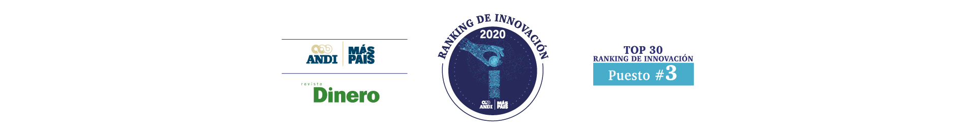 De acuerdo al ranking de la Andi y Revista Dinero, estamos en el Top 3 de las empresas más innovadoras del pais al lado de compañias como Ecopetrol y Grupo Nutresa. Este reconocimiento nos llena de orgullo pues evidencia que la innovación hace parte de nuestro ADN.